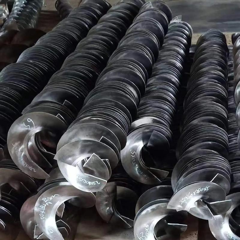 In der Bergbau-, Metallurgie- und Baustoffindustrie, wo harte, scharfkantige und stark abrasive Materialien verarbeitet werden, geben gewöhnliche Stähle schnell auf. Hier kommen Spiralblätter aus Manganhartstahl als "harte Kämpfer" ins Spiel. Dieses Material erfährt bei starkem Aufprall und Druck eine deutliche Kaltverfestigung, wodurch die Oberflächenhärte von ursprünglich etwa HB200 schnell auf über HB500 ansteigt und eine extrem hohe Verschleißfestigkeit erreicht wird. Es eignet sich besonders für den Transport von grobem Erz, Zementklinker, Stahlschrott usw. Die Eigenschaft, dass es "mit zunehmendem Verschleiß härter wird", verleiht dem Spiralblatt im Kampf gegen extreme Abnutzung eine unvergleichliche Lebensdauer und reduziert die Stillstands- und Wartungskosten, die durch häufigen Austausch entstehen, erheblich.